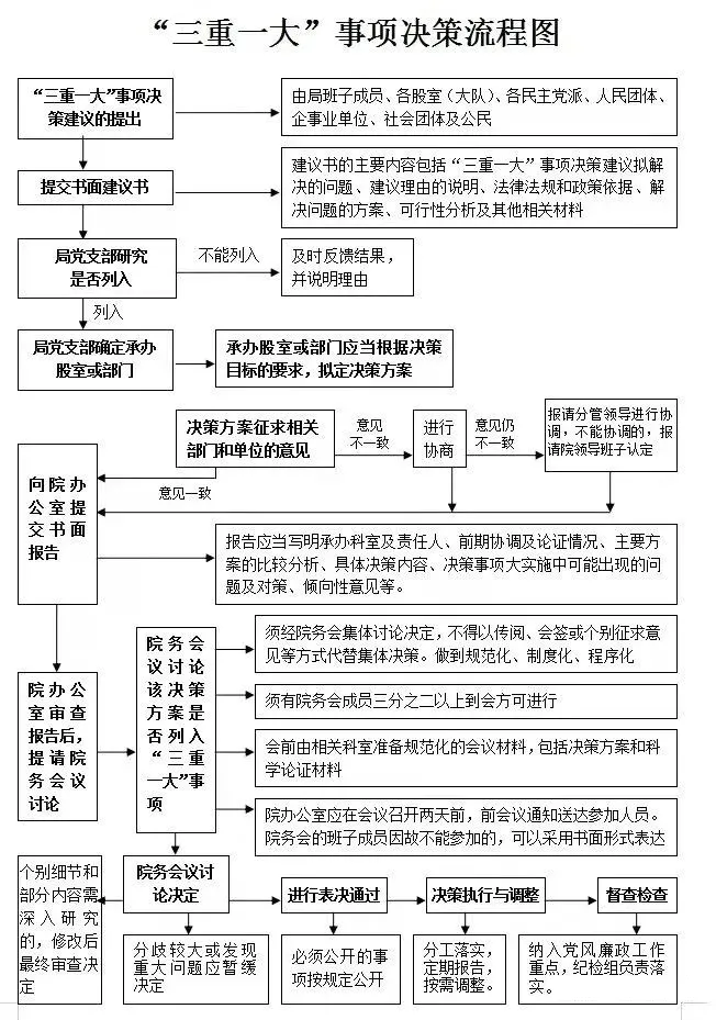 2010年,中共中央办公厅、国务院办公厅颁布《关于进一步推进国有企业贯彻落实“三重一大”决策制度的意见》。
